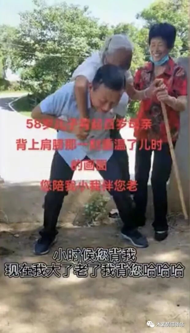 58岁的儿子更是抓住妈妈的手,示意老人家到自己的背上来,儿子更是动情地说:小时候您怎么背着我们来?现在您年纪大了,老了,轮到我背您了!