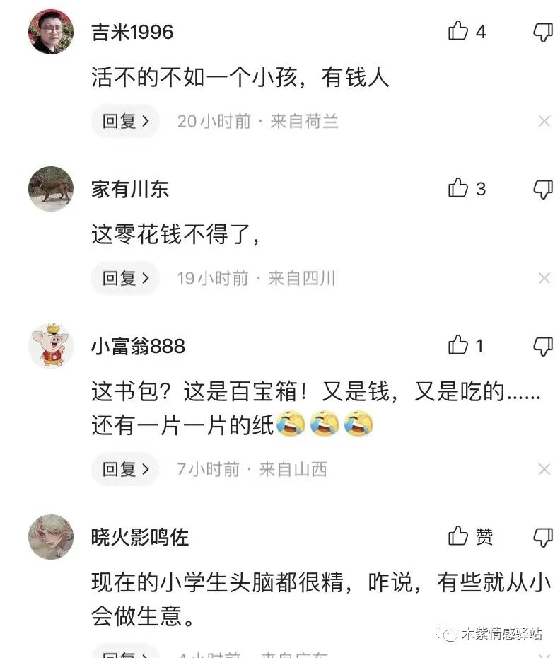 不过,也有网友说,这孩子书包太乱了,吃的东西和小动物放一起,真的不卫生,看来妈妈从小没有教导好孩子,要学会整理自己的东西。