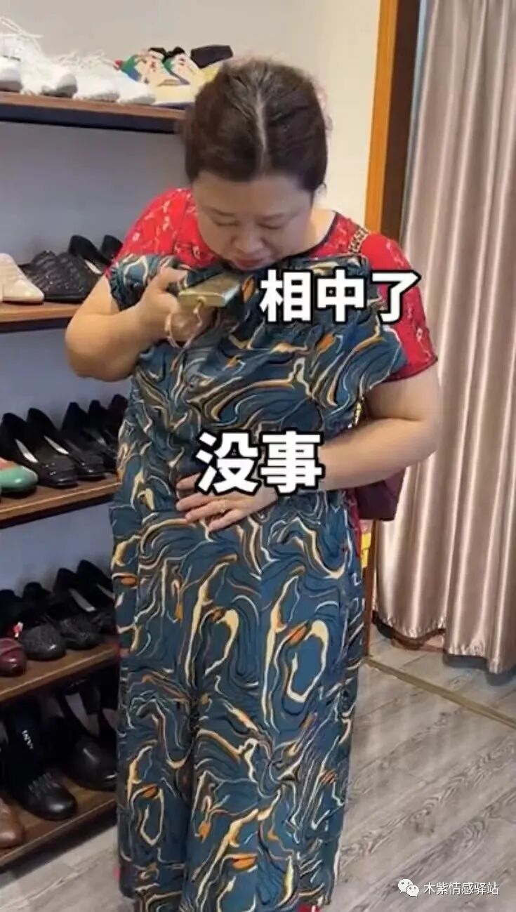 女子接着晒出了自己和婆婆的家庭生活日常,她和婆婆一块外出逛街,在服装店内,婆婆相中了一件墨绿色带花纹的长裙,她摆在身前,让儿媳帮她参谋好不好看。