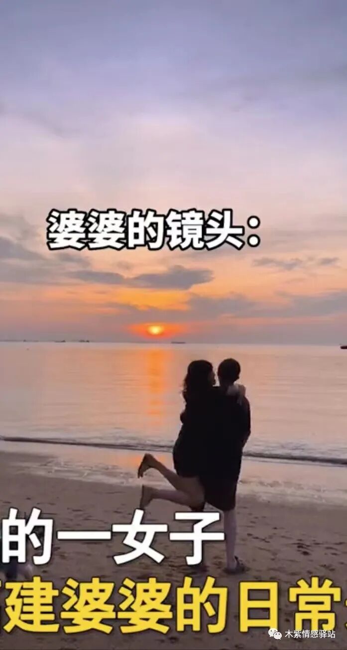 女子说,婆婆和自己相处地就像一对好闺蜜,她和老公早上起来去海边游玩,婆婆就拿着相机给他们拍照,记录下小两口幸福甜蜜的瞬间。