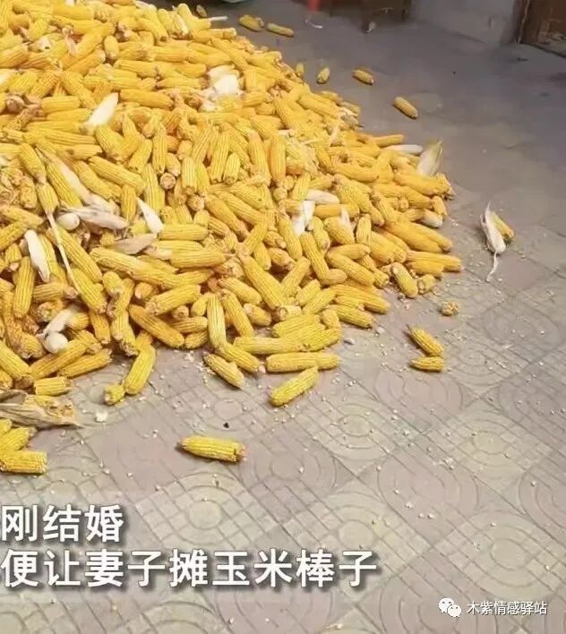 男子一听就急了:哎呀呀,这新婚第二天出门去哪里啊?家里这么多农活没有干完呢,来,帮我一把,把这些玉米摊开晾晒一下!