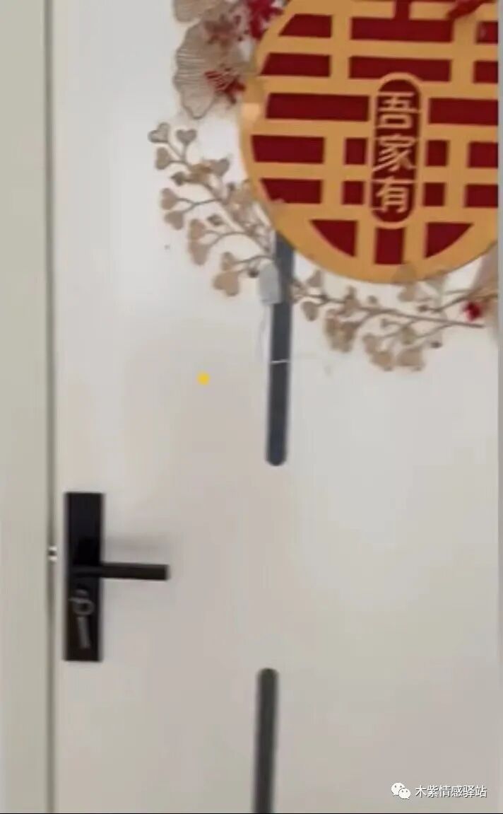坐标山东菏泽,某处居民楼内,一扇白色的木门上,贴着红色的四个大字“吾家有喜”,设计精妙,引人注目。