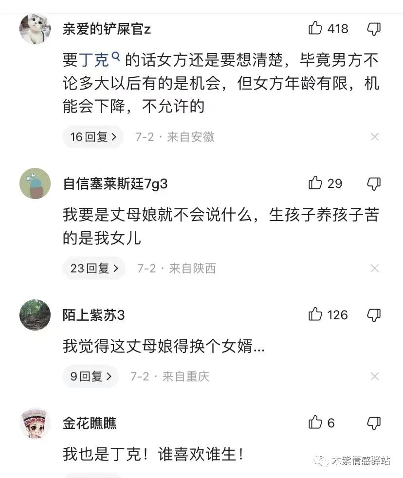 还有网友更是直言,要是丁克的话,建议女方还是要想清楚,毕竟男方不论多大年纪,以后有的是机会,而女方年龄有限制,过了40多岁,想要孩子就很难了。