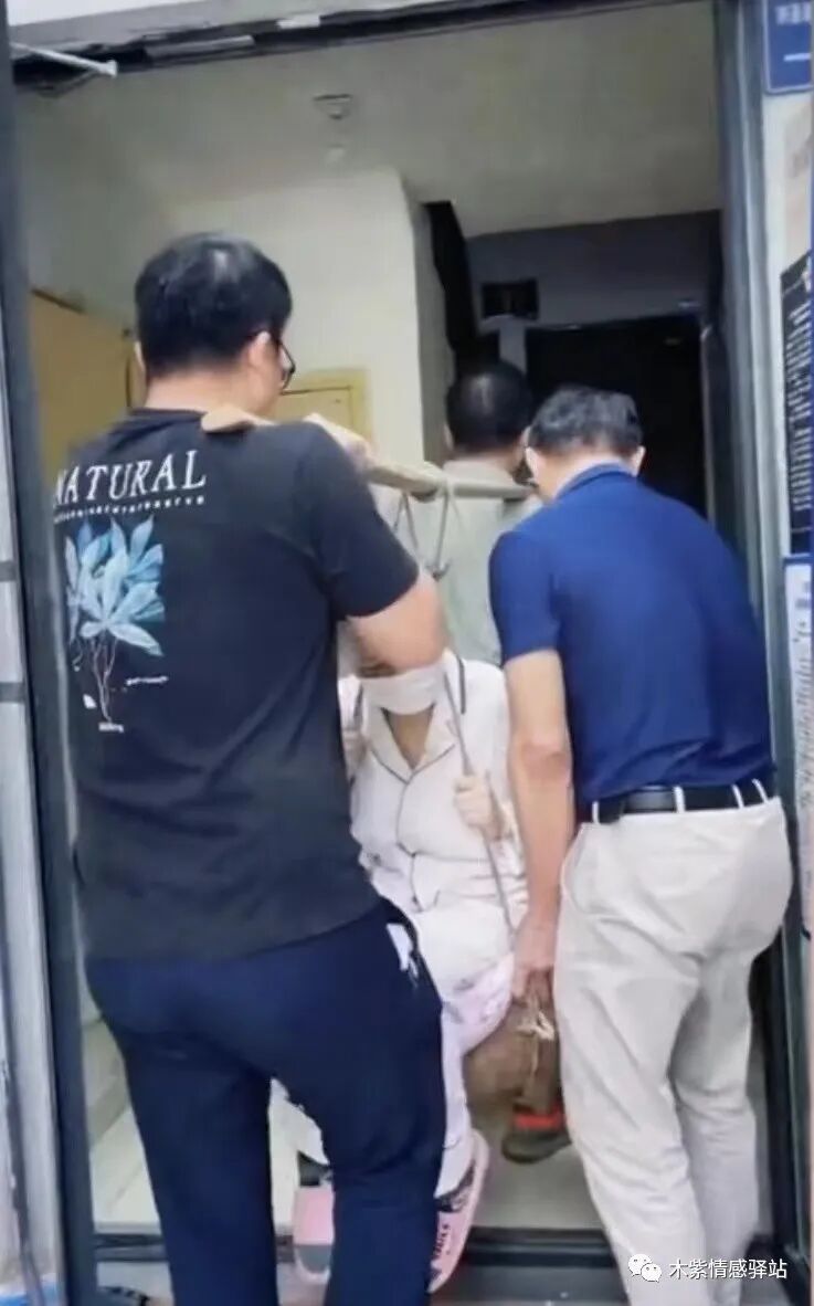 那怎么办呢?女子爸爸心急如焚,后来他想到一个绝妙的办法,他听乡下亲戚说,有这样的箩筐和扁担,于是爸爸赶紧开车去寻了这两个物件,由女子哥哥和老公,两个人合力一起把女子抬回了家。