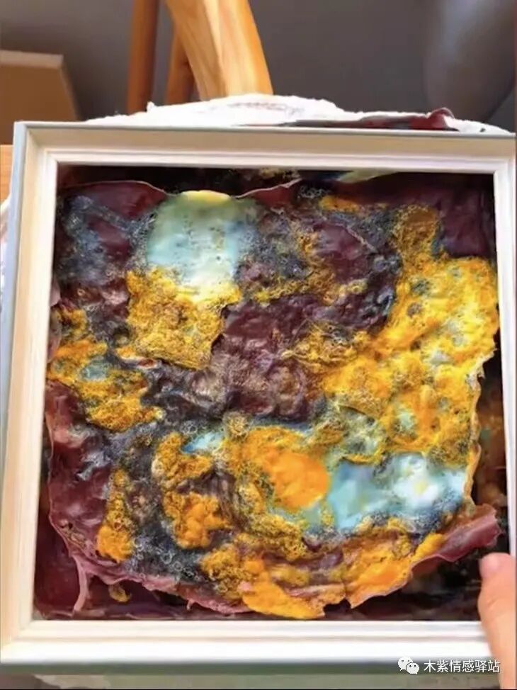 男子突发奇想,拿出来一个白色的方框,把鸡蛋饼“装裱”起来,天哪,成品看起来,这简直就是一副漂亮的抽象画,后现代风格,还颇有大师梵高的痕迹。