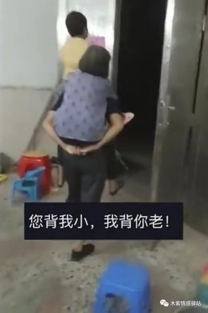 网友们看到这一幕,纷纷感动不已,他们说,这样的场面,正好印证了那句话:你背我小,我背你老,小时候,父母就是这样把我们放在背上,他们的背就是孩子们的大山和依靠。