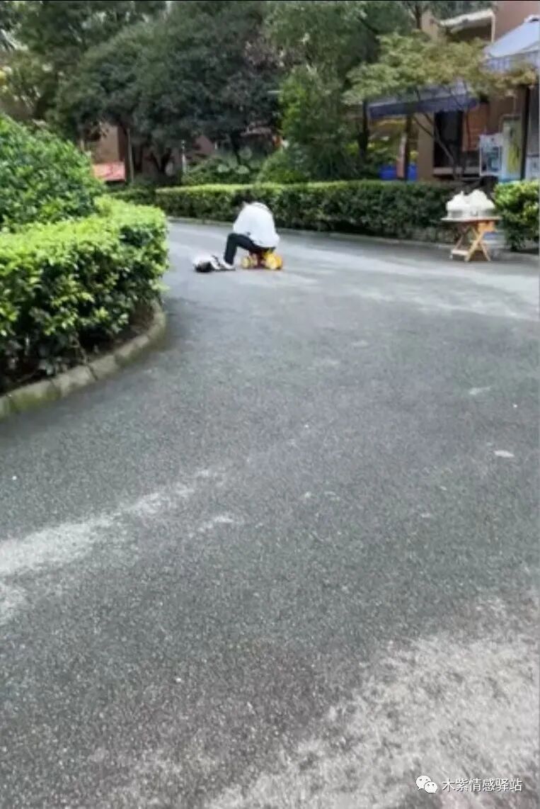 女子正欲离去,忽然发现,旁边又过来两个小朋友,都骑着小小的自行车,看起来和躺在地上的小女孩,差不多大的年纪,两个孩子一前一后,先后来到哭闹不停的小孩的旁边,满怀同情地看着她。