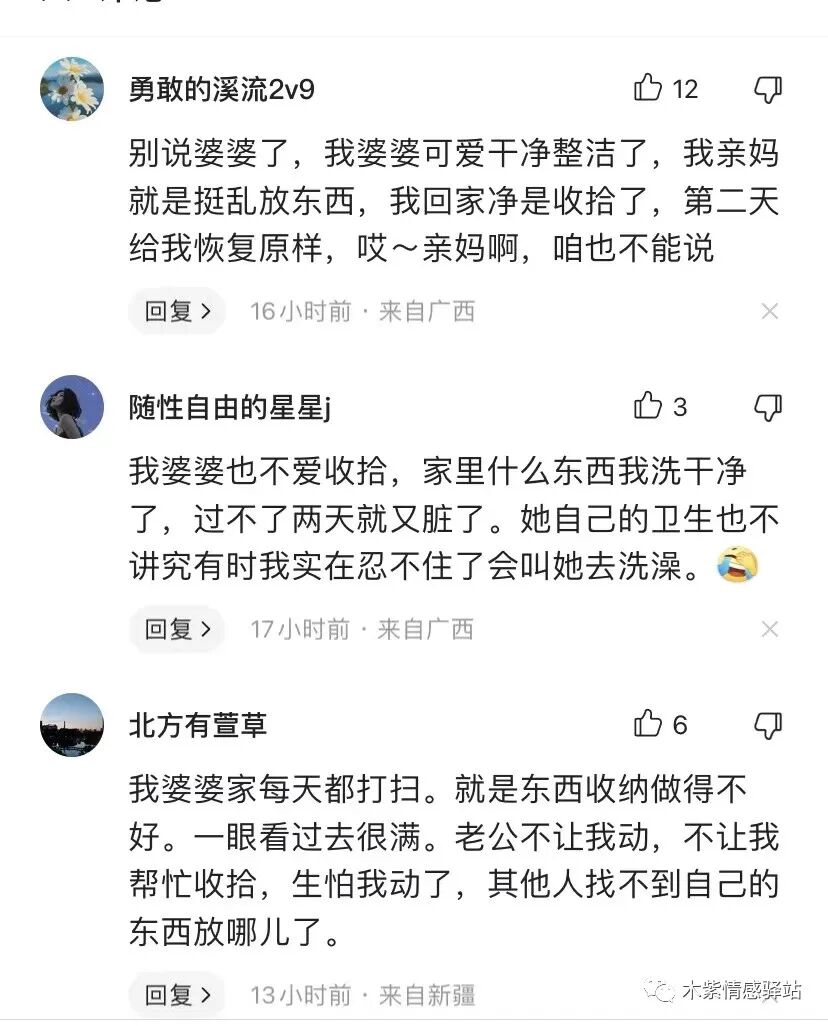 有网友说,女人爱干净不分多大岁数,我婆婆我们都是一个月给她大扫除一次,下次回去照样还是很脏。有时真的很无语。
