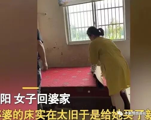 坐标安徽阜阳,一位年轻儿媳回了住在乡下的婆婆家,她看到婆婆所睡的床,太旧了,好心善良的儿媳于是掏钱给婆婆买了一张新床。