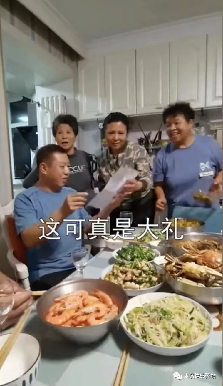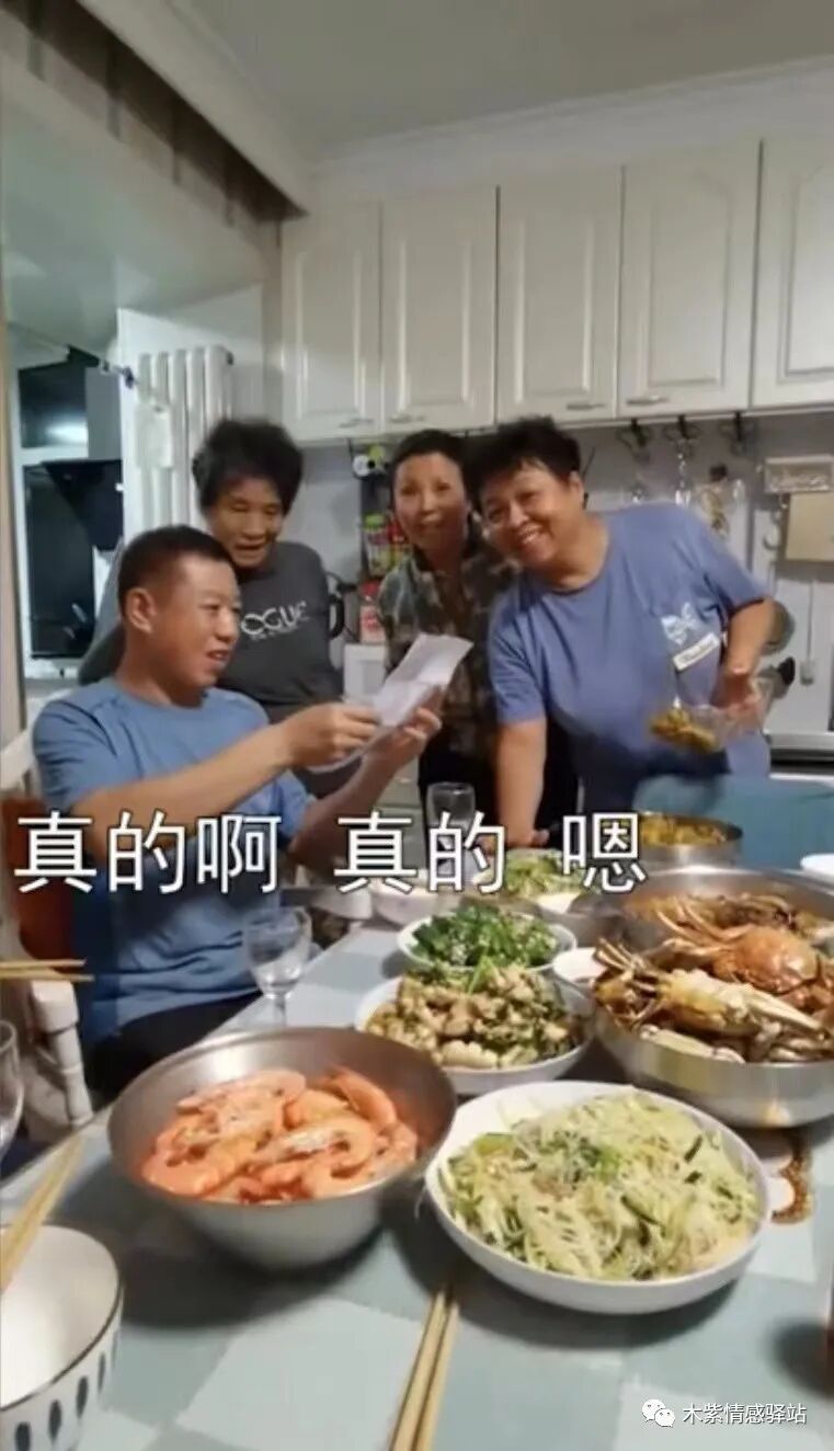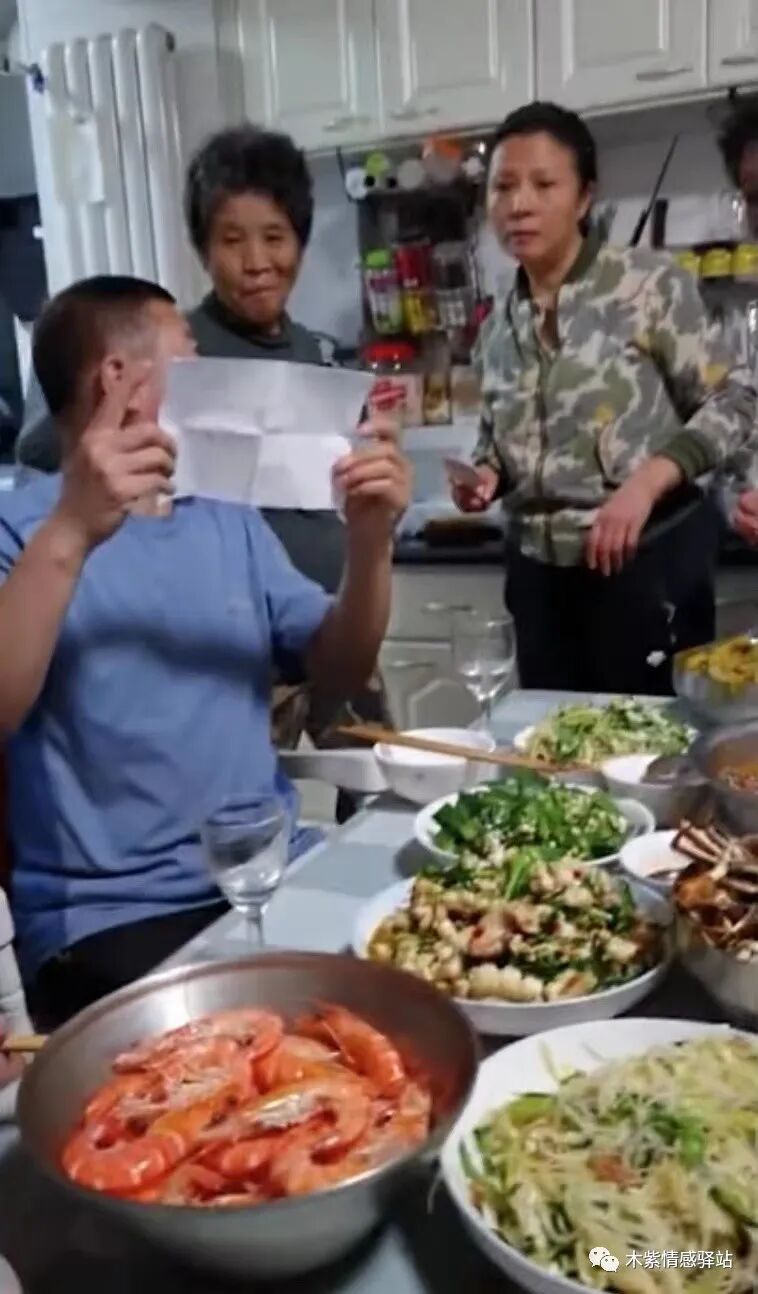 大家有说有笑,边吃边聊,谁也没想到,这时女子突然拿出来一张自己的产检单,递给家人们看。