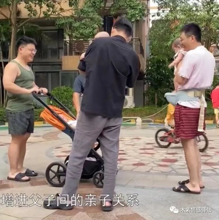 宝妈下楼来看到眼前的一幕,觉着好笑的同时,又感到莫名的温馨,她说这相当于形成了一个小区的“爸圈”,而且让人感觉,爸爸们抱着娃之后,仿佛都不内向,不害羞了,从社恐变成了社牛。大家都愿意分享自己家孩子怎么样,让人感觉非常温馨,并且打破了带娃是女人专属工作的那种传统认知。