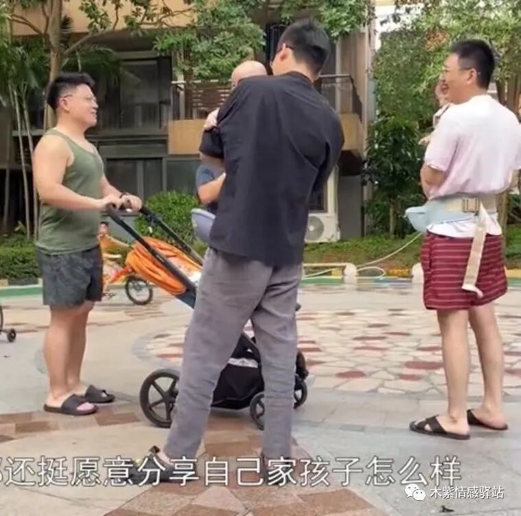 这位宝爸本来是个性格内向的男人,平素不喜欢和陌生人多说话。不过,他推着宝宝下楼,在小区内转悠的时候,遇到了其他几位带娃的宝爸。