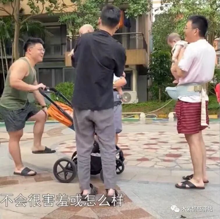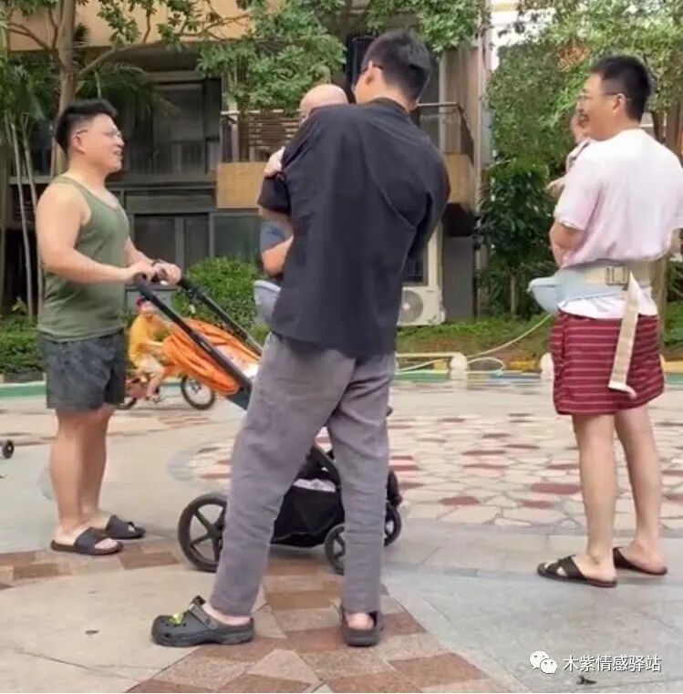 近日,有网友分享了一段很有意思的短视频,画面中,四位男子仿佛约好一般聚集在小区楼下的花园地带,他们每个人都带着一个宝宝,或抱着,或用小推车推着,四个大男人看起来聊得非常开心。