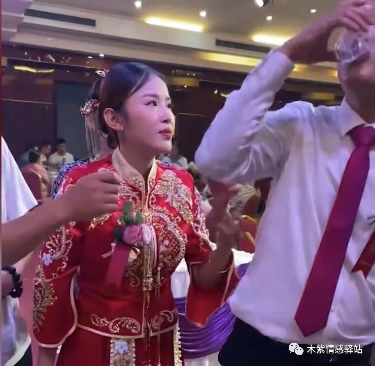 从新娘对新郎的眼神可以看出,她非常爱自己的老公,看到老公一杯接一杯的喝酒,她心疼不已,说明她是一个好妻子,谁的老公谁心疼,这话没毛病。