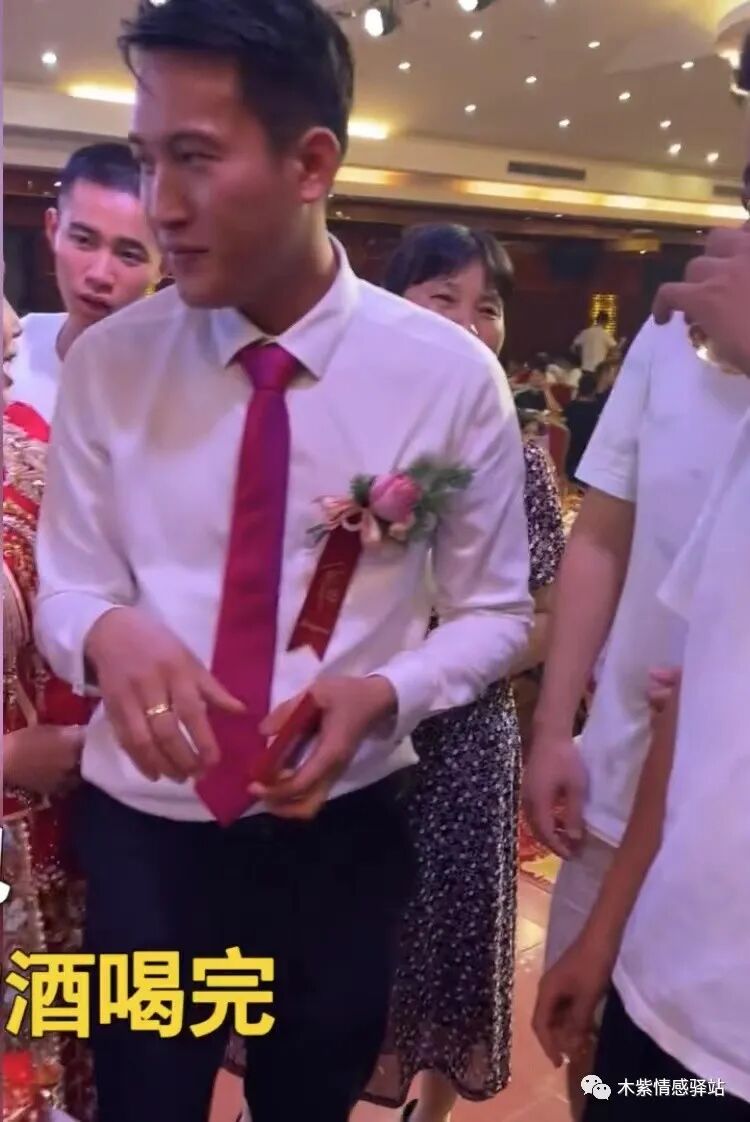 新郎是一个身材高大,瘦削,而又帅气的小伙子,他脸上微红,看起来已经喝了不少酒,但是盛情难却,眼前的这些酒,看来是躲不过去的。