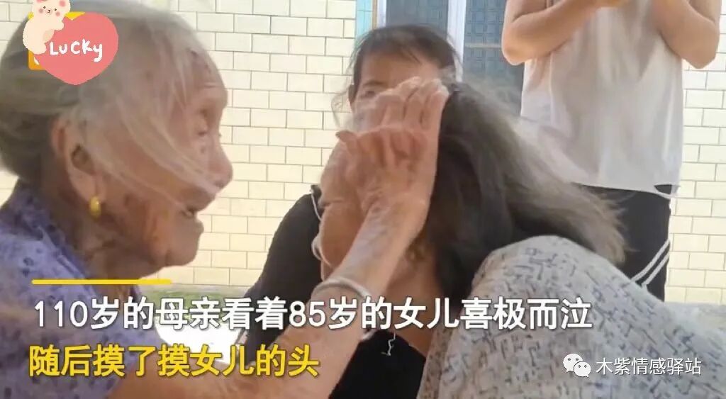 看到85岁的女儿,扑倒110岁妈妈的怀里,仿佛小时候,我们扑进妈妈温暖的怀抱,一样的情景,让人感动落泪。