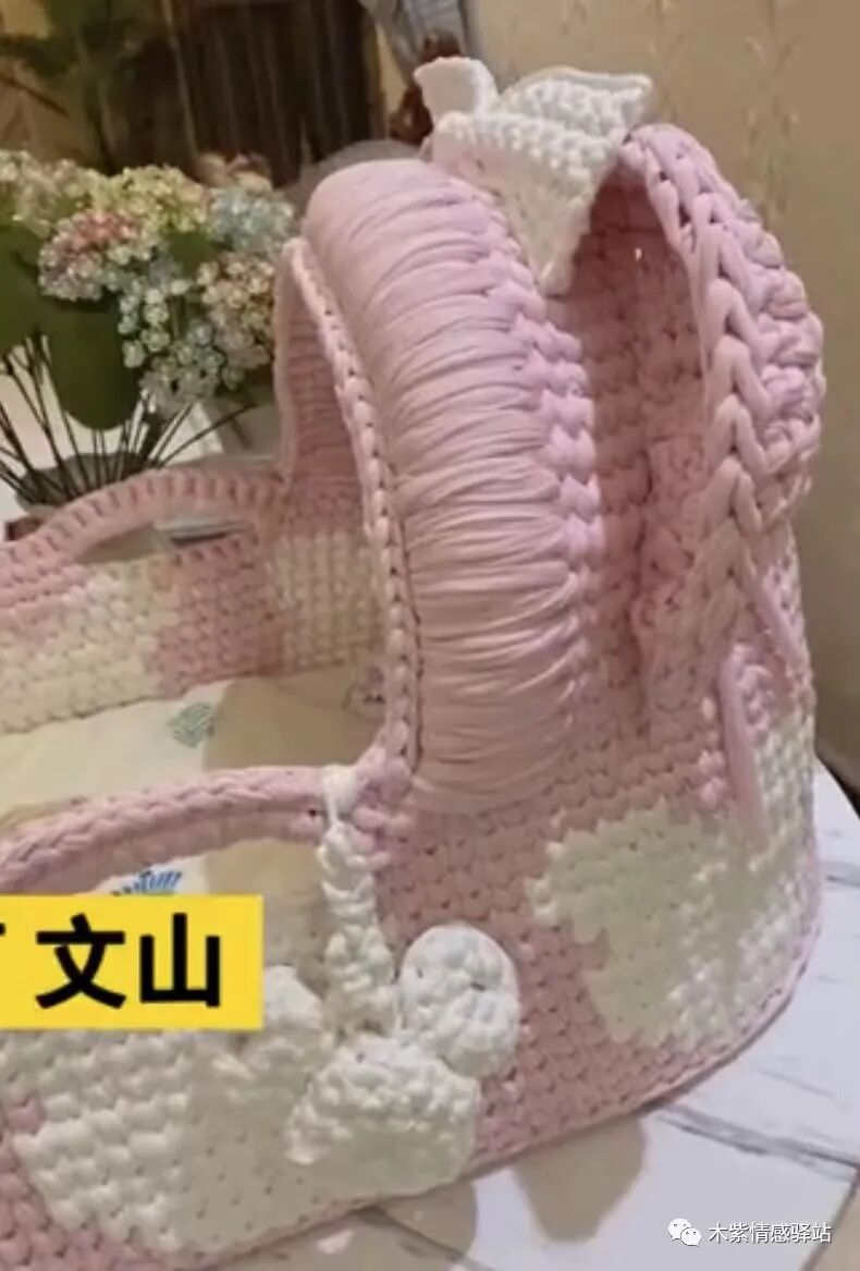 坐标云南文山,画面中,一名女子向网友展示了一款精美的手工制品,粉白相间的颜色,里面地步铺着卡通印花的纯棉布,这是一款手提篮,宝宝出生后,用这样的手提篮提着回家,看着如此精巧美丽,别具一格,让人惊叹不已。