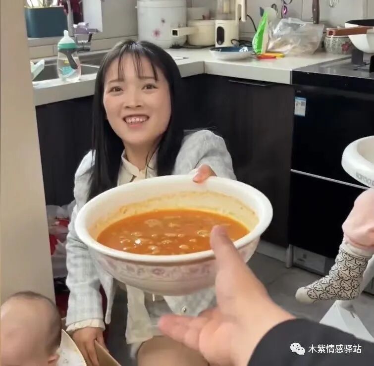 男子看到这里,忍不住鼻子一酸,叫了声“老婆”,妻子看到丈夫回来了,瞬间露出了甜蜜的笑脸,把手里的汤盆递给老公,双手把儿子抱进怀里。