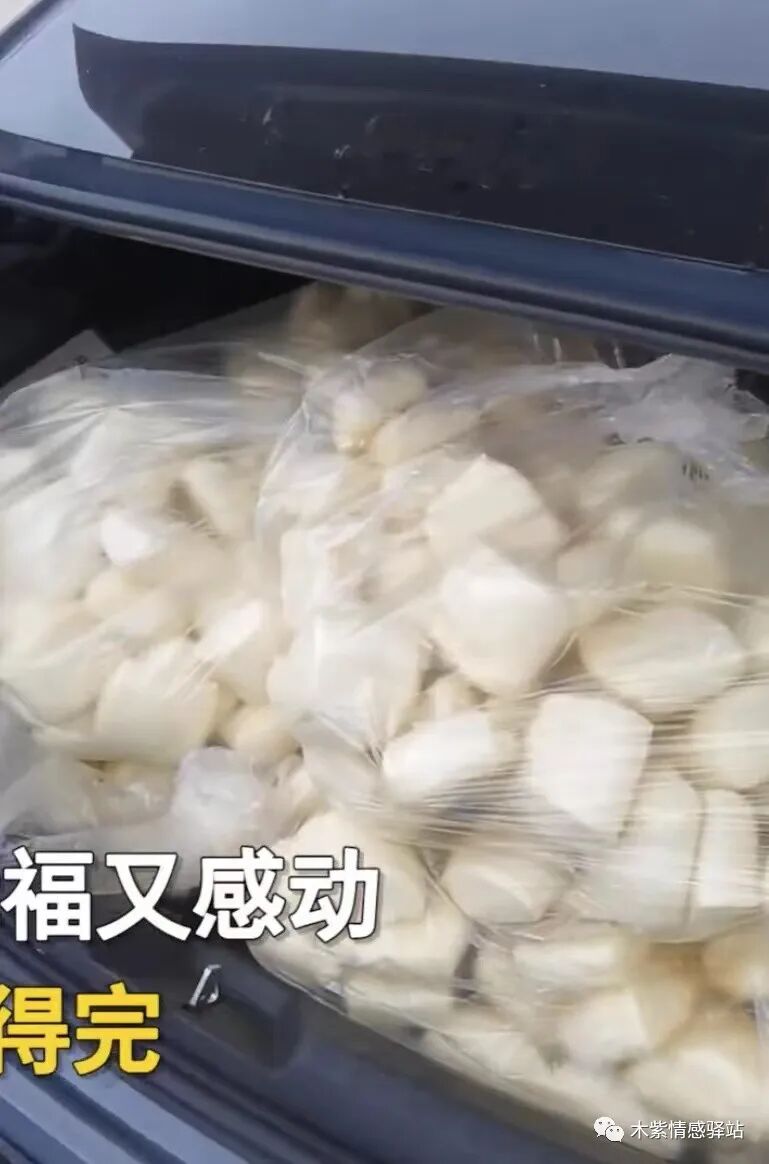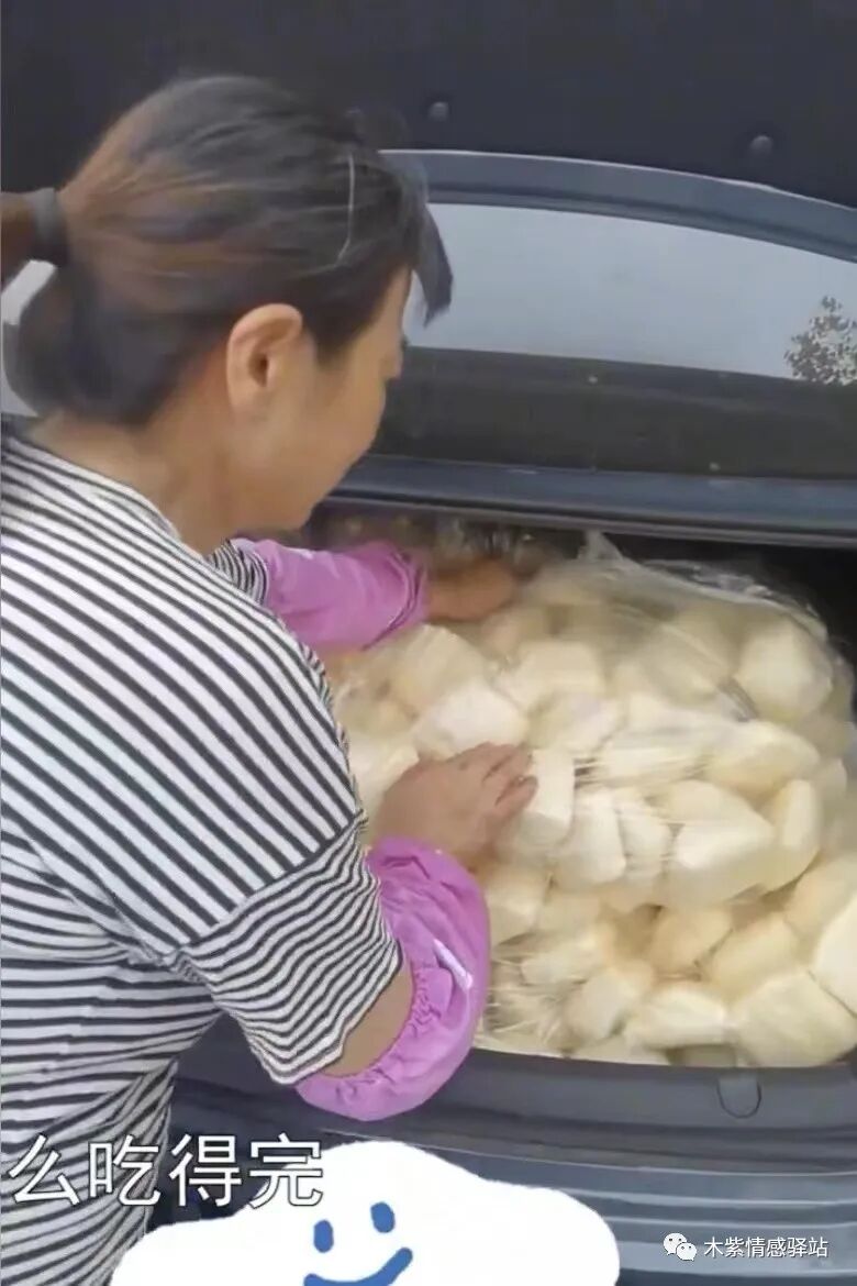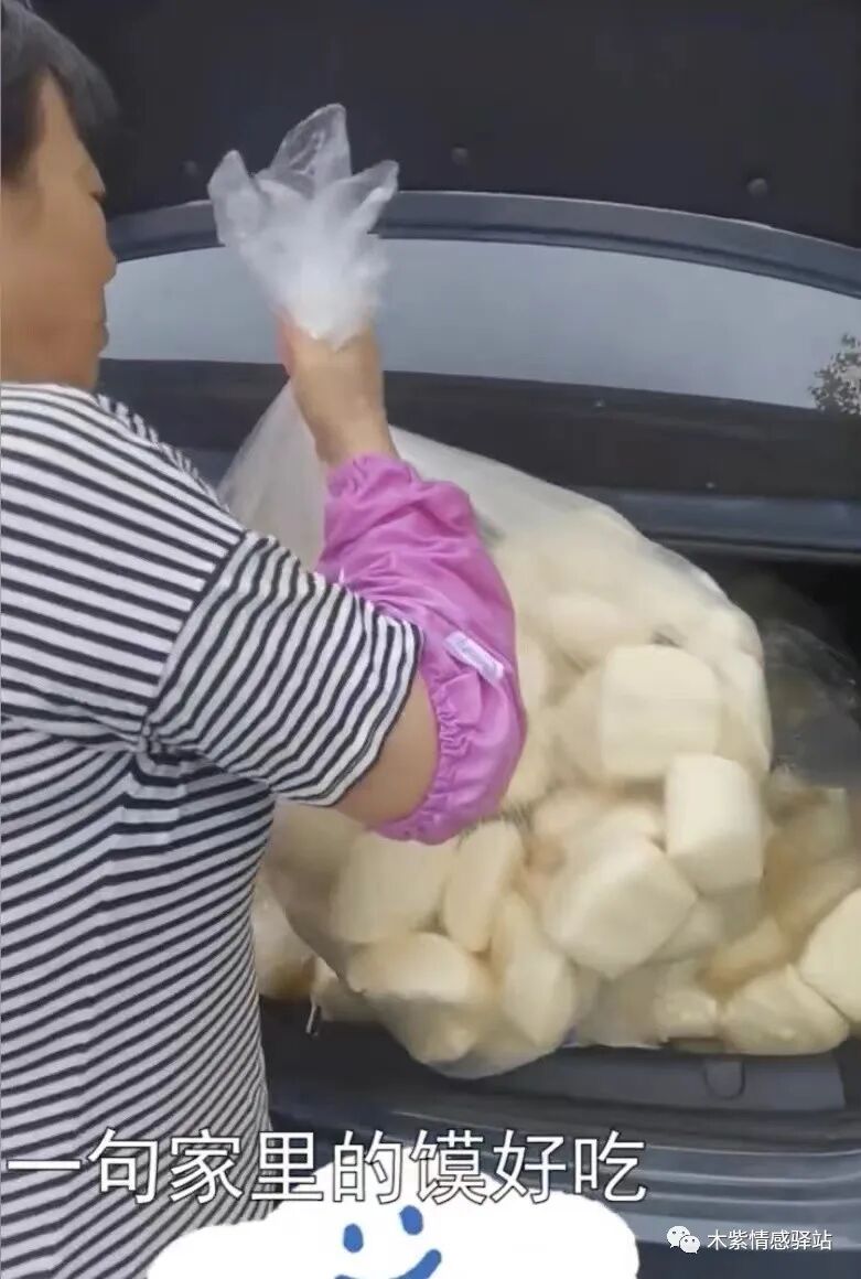 第二天,女儿准备开车启程回城,看到妈妈提着几大袋蒸好的白胖胖的手工馒头,妈妈用干净的保鲜袋装好,全部装到女儿汽车的后备箱里面,装得满满的。