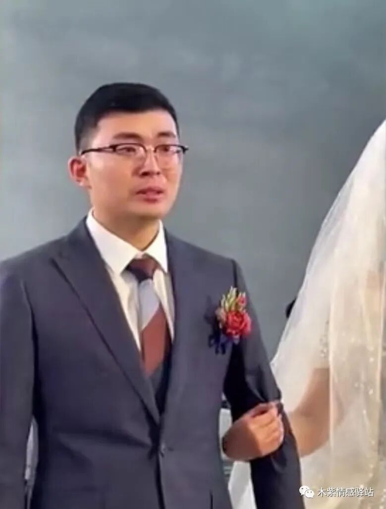 坐标山东济南,这是一处酒店大厅内,一对新人的婚礼正在举行,新娘穿着洁白的婚纱,面带笑容,表情淡定,而她旁边的新郎,西装革履,戴着一副近视眼镜,但是,他却哭得泣不成声,泪水不停地从眼角滑落。