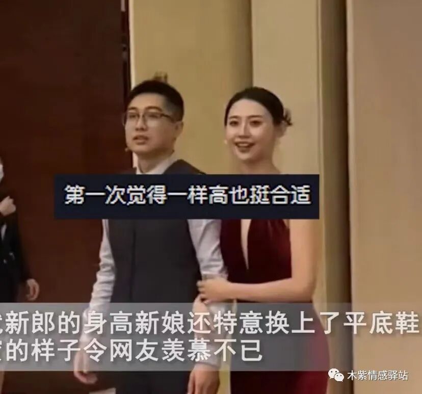 新娘不仅外表美,而且情商比较高,她深知在这样的重要场合,要尊重丈夫,顾及他的感受,不想让自己太突出,所以,主动选择平底鞋,降低身高,这样,显得两个人旗鼓相当,更加般配。