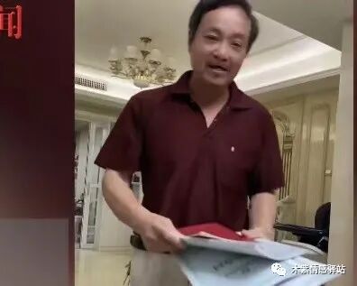 一名中年男子,面容和蔼,面带笑意走过来,他的手里拿着一本房产证还有购房合同,他把房产证和购房合同轻轻地放在面前的大理石茶几上。