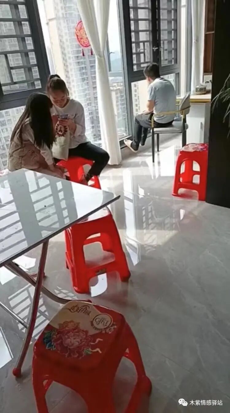 还有人独自坐在窗前晒太阳,两个年少的小姑娘,坐在一旁的红色凳子上,开心地玩着游戏,大家伙虽然看着有点儿无聊,但是神色淡然,心情也不错。