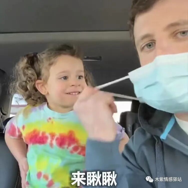 然而等第二天爸爸又来接女儿放学的时候,爸爸摘下了口罩,露出了光洁的脸庞,原来,他把胡子给剃掉了,剃得特别干净。