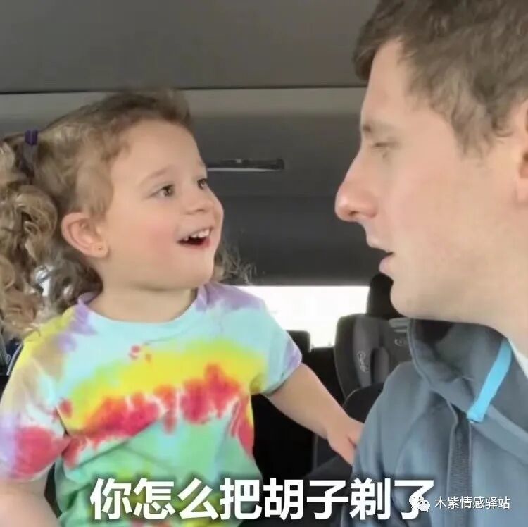 爸爸回头宠溺地看着女儿的眼睛,平静地说:你说的要让我剃胡子。