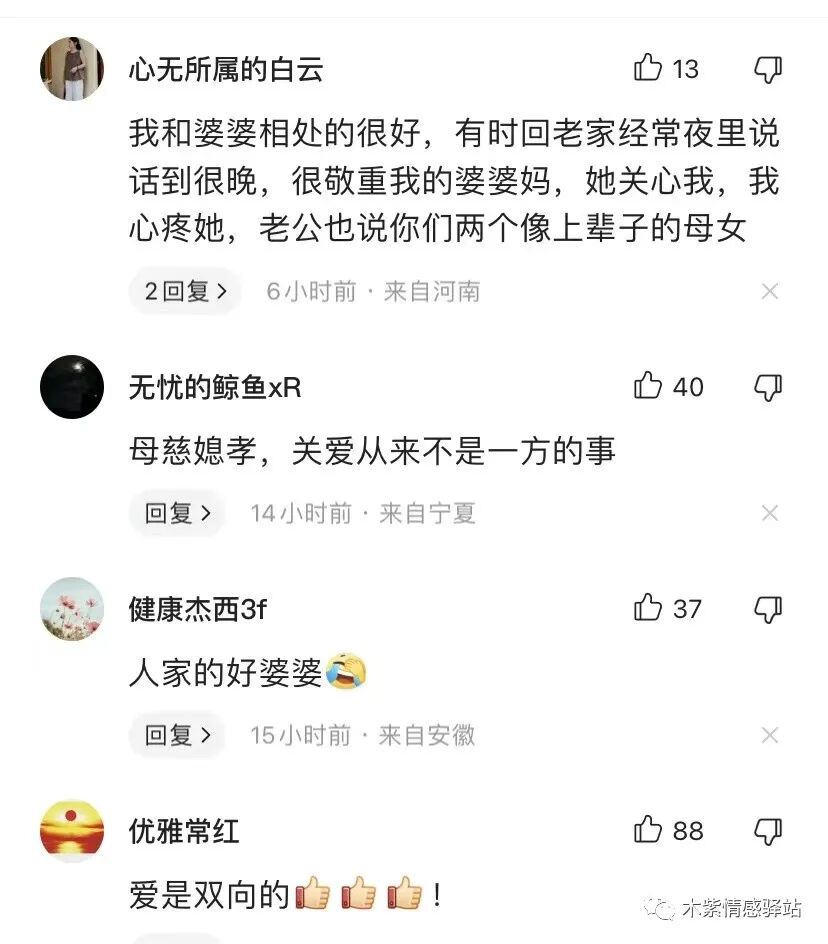 网友们看了婆媳之间温馨的一一幕幕,无不为之感动,她们说好婆婆都是别人家的,婆婆善良,儿媳也是懂事感恩的好女人,爱是双向的。