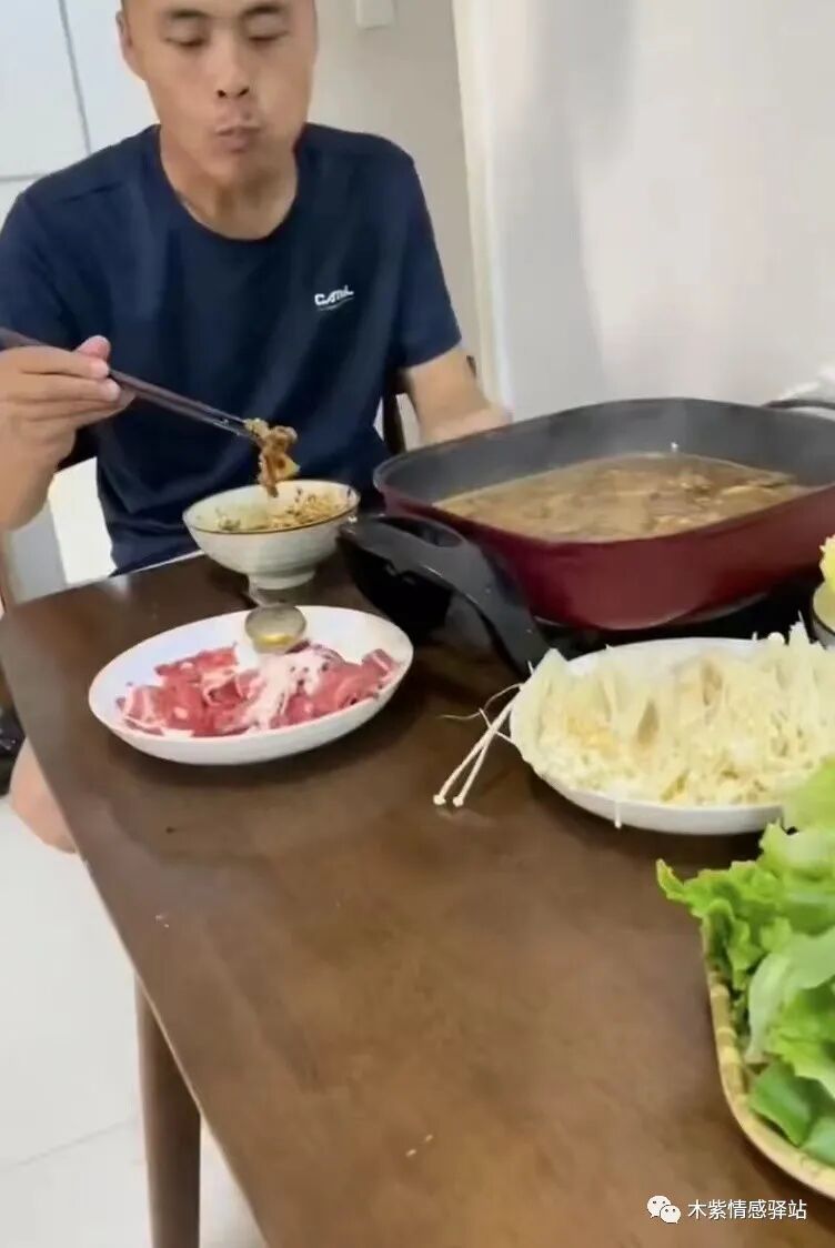 女子无奈表示,自己吃辣酱拌饭已经好几天了,有时候是面条,有时候干硬的馒头或者煎饼,而老公,由于擅长厨艺,每天变着花样大吃大喝,要么是涮火锅,要么是烤羊肉串,男子边吃边回头诱惑老婆,希望她能低头,先向自己求和。