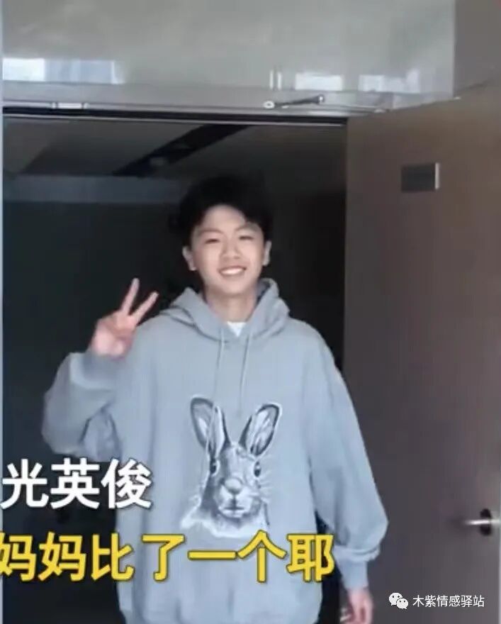 最后压轴出场的是15岁的大儿子,他一只手插进口袋,另一只手拿着手机,边走边看手机,半路还来一个迷人的“歪头杀”。大儿子看起来相对成熟稳重,气质清冷,不像两个弟弟那么纯真暖心。