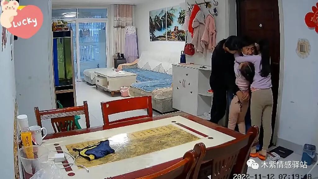 妈妈看着老公和女儿们紧紧地拥抱在一起,她赶紧笑着说:快进来,进来再说!