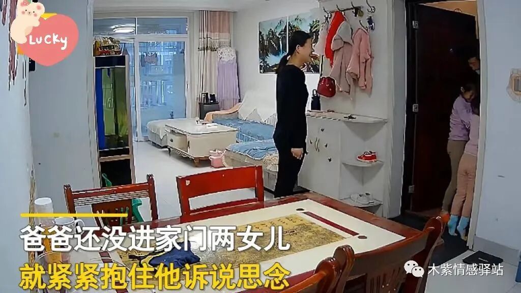 倒是年轻的妈妈,后退几步,站在原地,显得有点拘谨,不知所措,她多么想冲上去抱住老公,不过,她最后还是把机会让给了两个年幼的女儿。