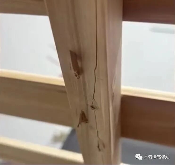 从男子拍摄的照片可以看出,床下面的横梁上,出现了很长的一道道裂痕,甚至连用来支撑床板的床柱子也掉了,看起来让人触目惊心。