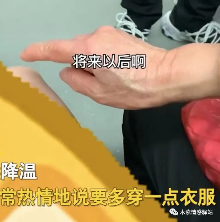 老人边说,边试图伸出双手,给女孩捂住膝盖,加以保暖。老人家甚至现身说法,她说我们现在都知道了,年轻时不注意保养身体,到老了得了风寒症,非常痛苦。