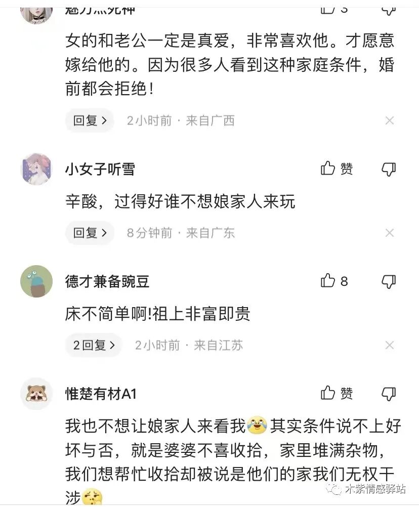 也有网友说,远嫁其实没问题,问题的根源是婆家太穷,要是远嫁到一个富裕人家,住着大别墅,你就不会这么失落和难过了。
