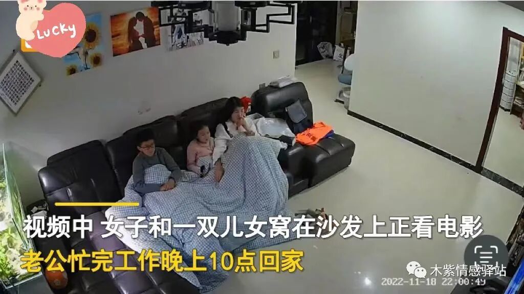 女子说等老公吃过饭后,老公换上了睡衣,一家人又围坐在沙发上,一起看完了电影。