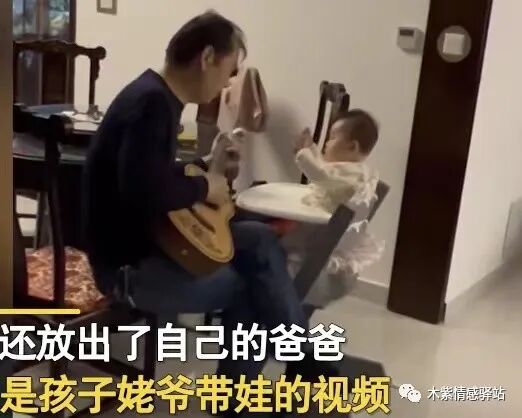 女儿又放出了爸爸,也就是孩子姥爷带娃的视频,姥爷弹着吉他,年轻时候的姥爷很帅气,还是个文艺青年,和妈妈在一起真的很般配。
