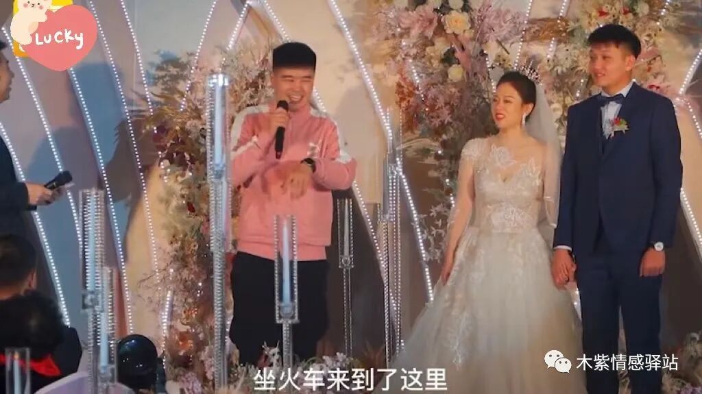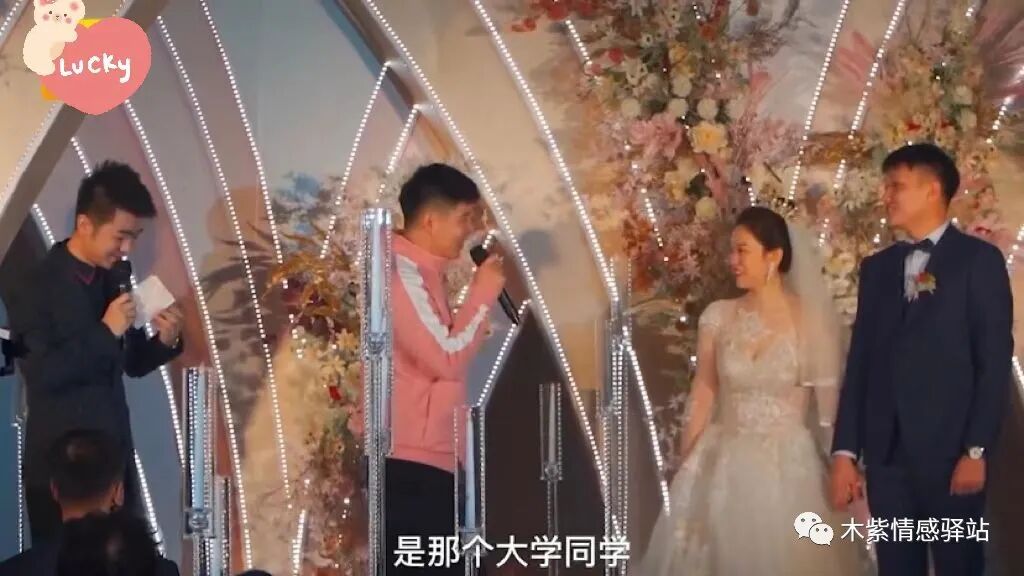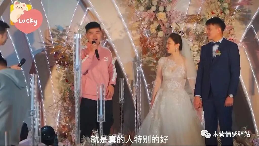 男生一直强调新娘人特别的好,对于她和新郎能喜结连理,男同学发自内心地祝福,希望他们两个新婚快乐,百年好合。