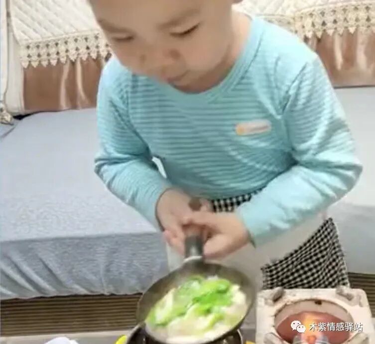 妈妈表示爱着从小就喜欢下厨做饭,因为特意买了一套小炊具,让他自己做菜吃,现在孩子掌握的炒菜技能有很多,做饭厨艺突飞猛进,下面条那就是小儿科,什么酸菜五花肉,煮海鲜等等,孩子都能轻松驾驭,手到擒来。