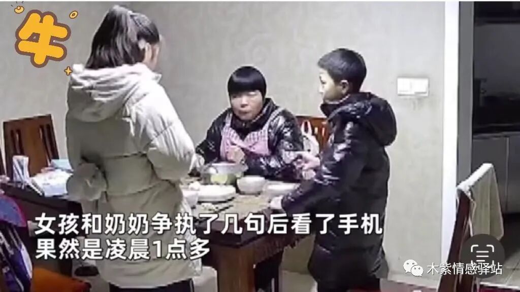 女孩忍不住和奶奶争执了几句,并且把手机拿给奶奶去看,奶奶这才明白,她看错表了,夜里1点多,她看成是早上6点了,于是早早起床做饭,并且把孩子们叫起来起床吃饭。