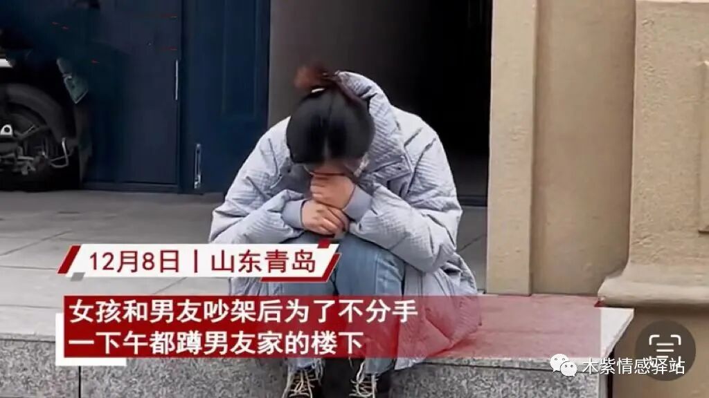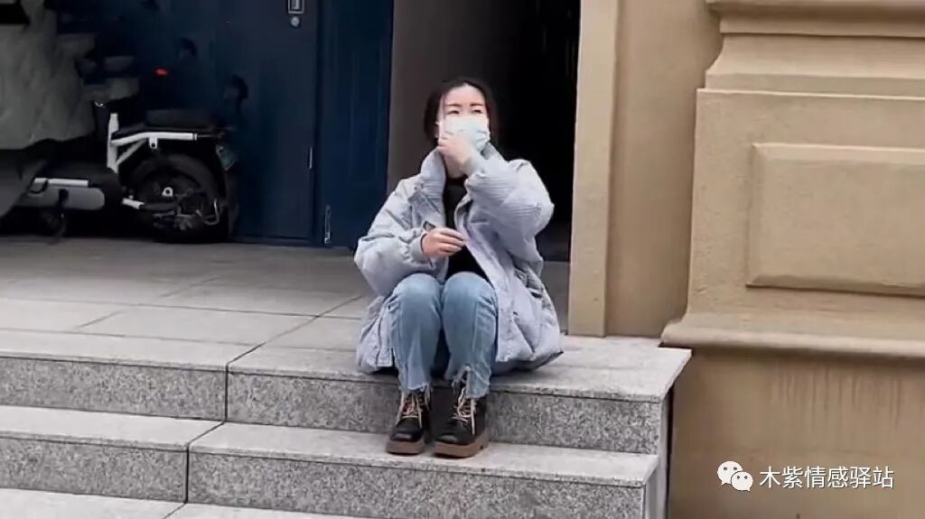 坐标山东青岛,一位网友分享了一段视频,画面中,一个面容秀丽的年轻姑娘,穿着蓝色牛仔裤和灰色棉衣,看起来穿得很单薄,她静静地蹲坐在一栋楼前的台阶上,低声哭泣。