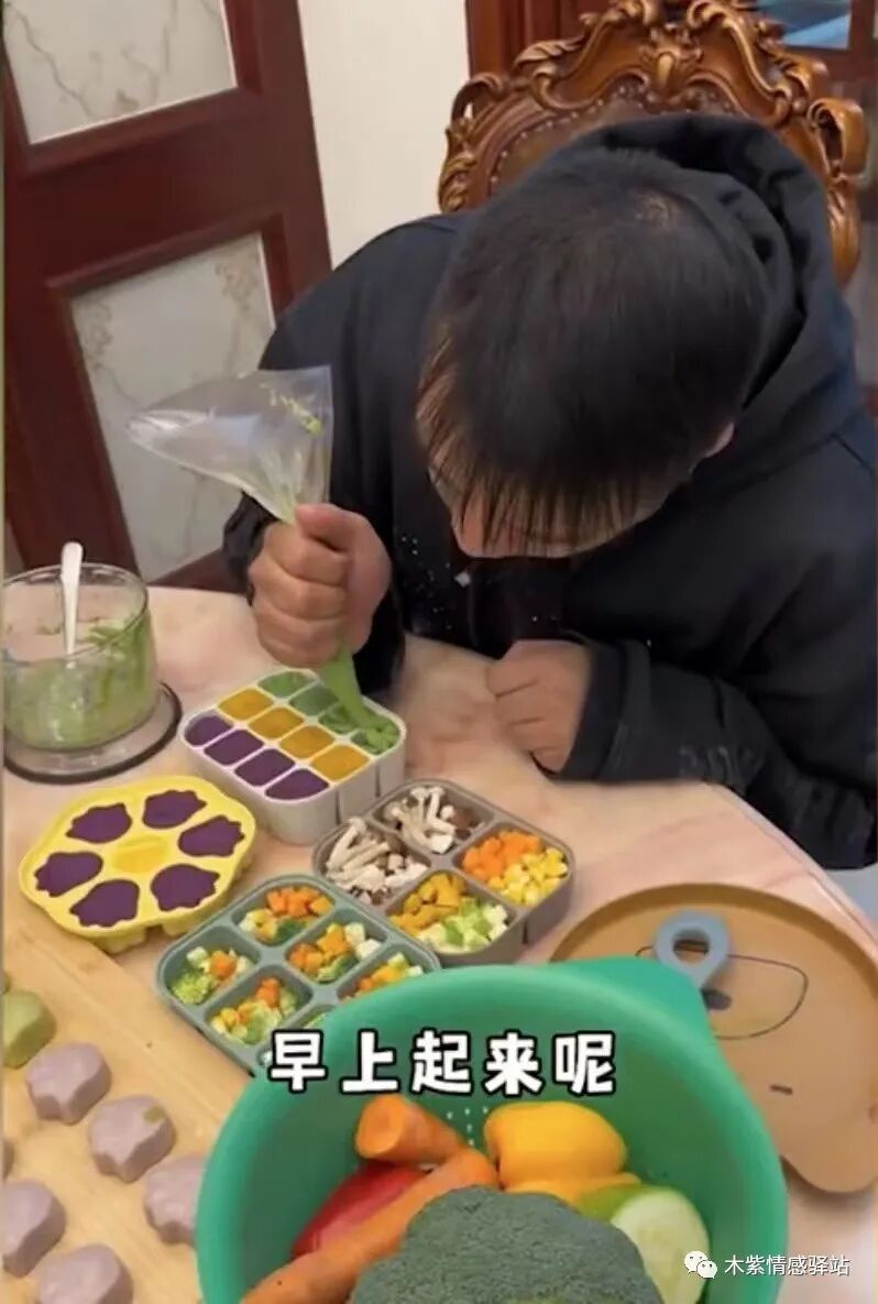 男子做的美食简直可以媲美满汉全席,一日三餐皆不同,有面包,火锅,煲仔饭,甚至还有卤味,还给宝宝做了专门的辅食,把水果剥好洗干净,分门别类给妻子放进冰箱。
