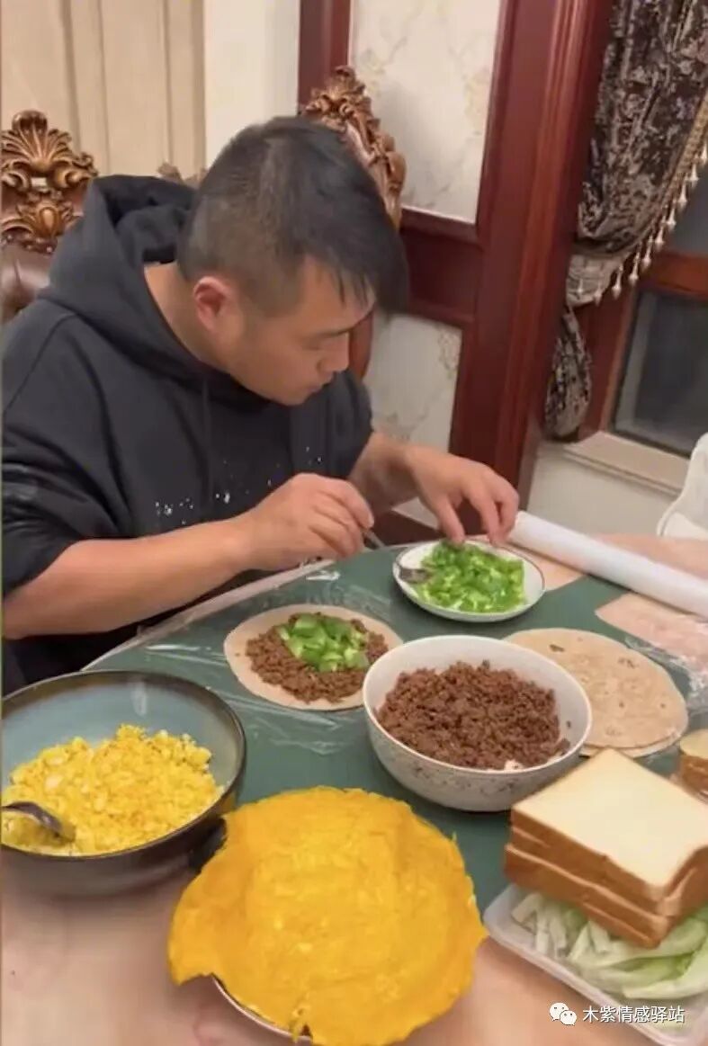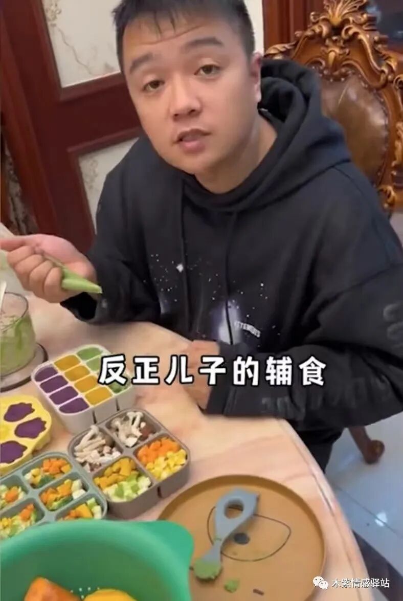坐标江苏无锡,一名二胎宝妈拍摄了一段家庭短视频,画面中,一名留着短发的年轻男子,穿着黑色的连帽卫衣,他安静坐在餐桌前,手里拿着餐具,正在精心地准备各种美食。