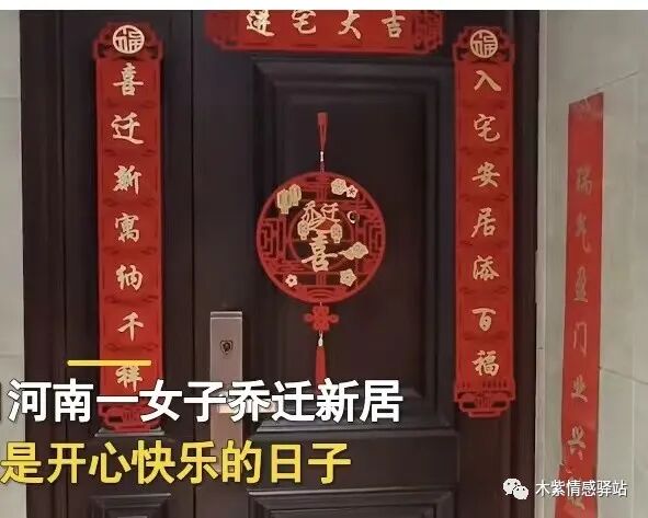 本期素材来源于河南新乡,画面中,这是一处装修好的新房,朱红色的大门上,贴着一对喜庆的对联,房间里,光线明亮,地面洁净,桌子上摆着新鲜水果和各种零食,几根粗大的红色蜡烛,还有一个定制的蛋糕,上面写着四个大字“乔迁新居”。