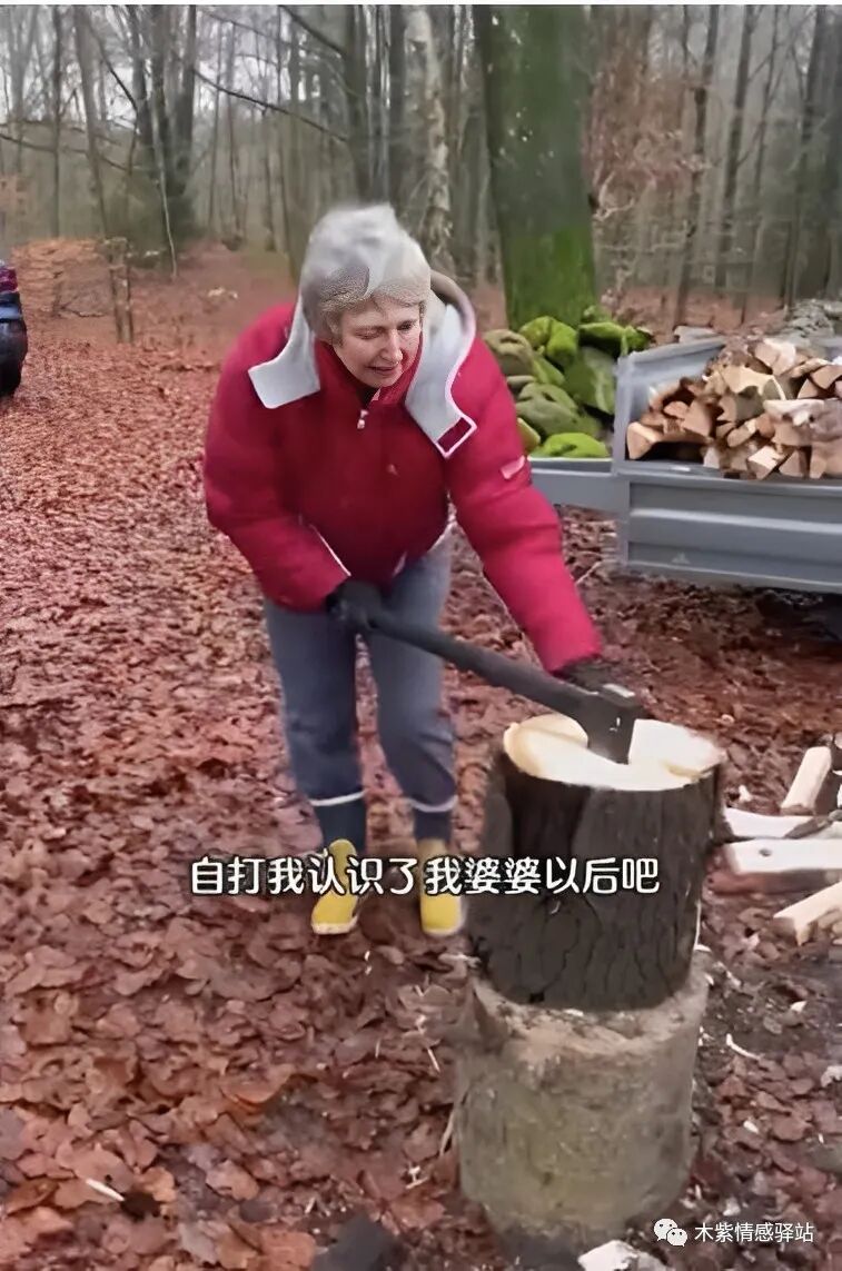 女子婆婆是个很能干的女人,虽然白发苍苍但是看起来身体很棒,而且老人家劈柴很利索,家里所有的木柴都是手劈的,女子说她特别佩服自己的婆婆,是个狠人。