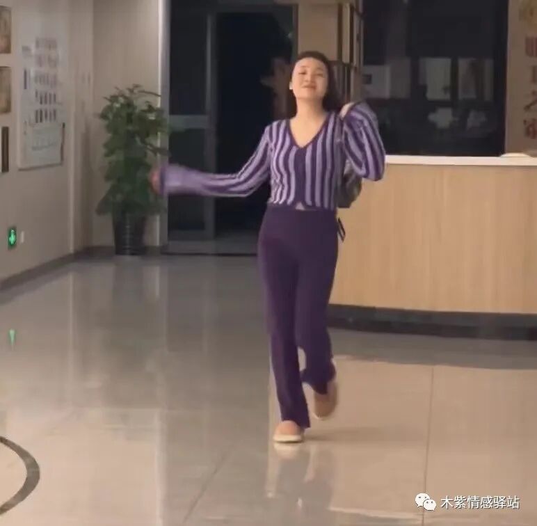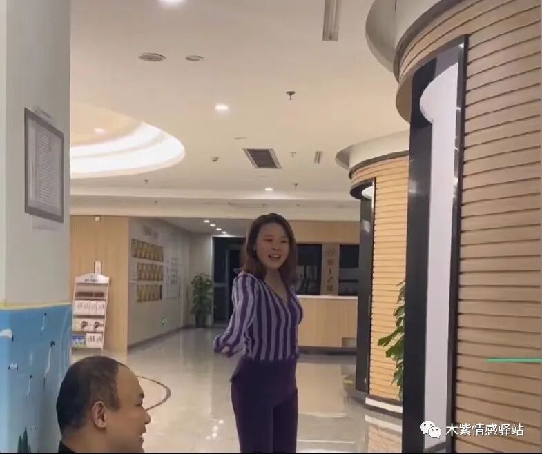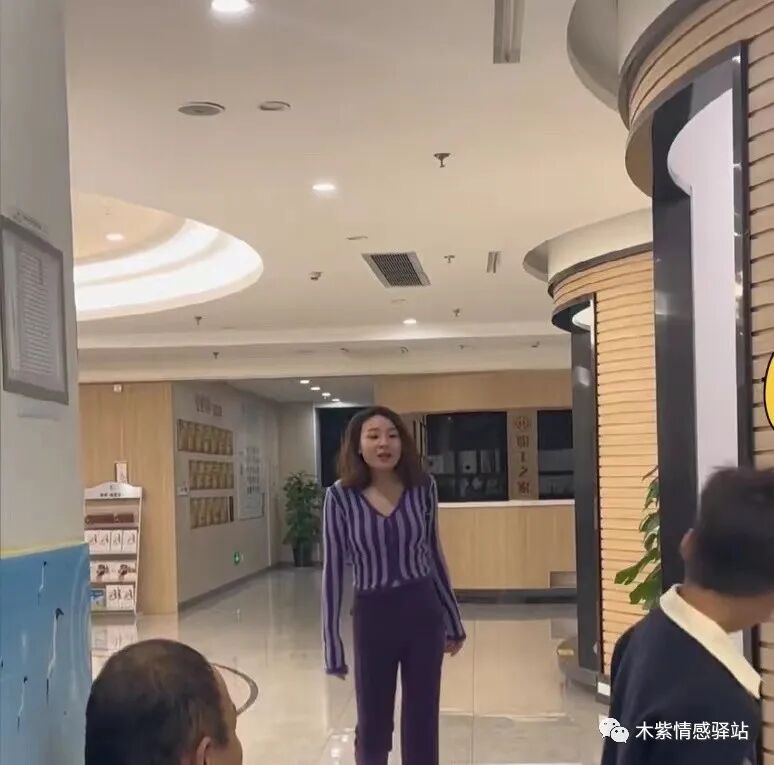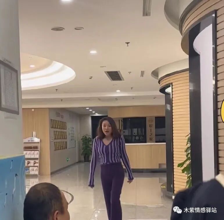 随后,一名年轻女子,穿着深紫色套装,留着波浪般的披肩长发,斜挎单间包,袅袅婷婷,自信满满地从医院走廊另一端走来出来。