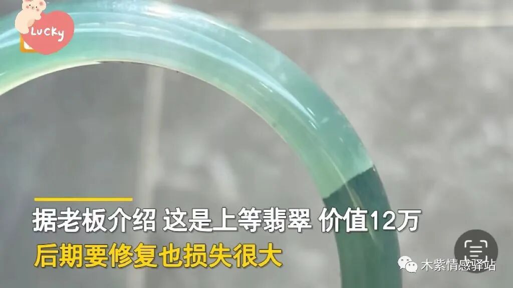 男子是这家珠宝店的老板,这只手镯是一只名贵的翡翠手镯,价值12万,本来是一个客户预定的,男子给客户拍了视频看一下,想着过一会再收起来。