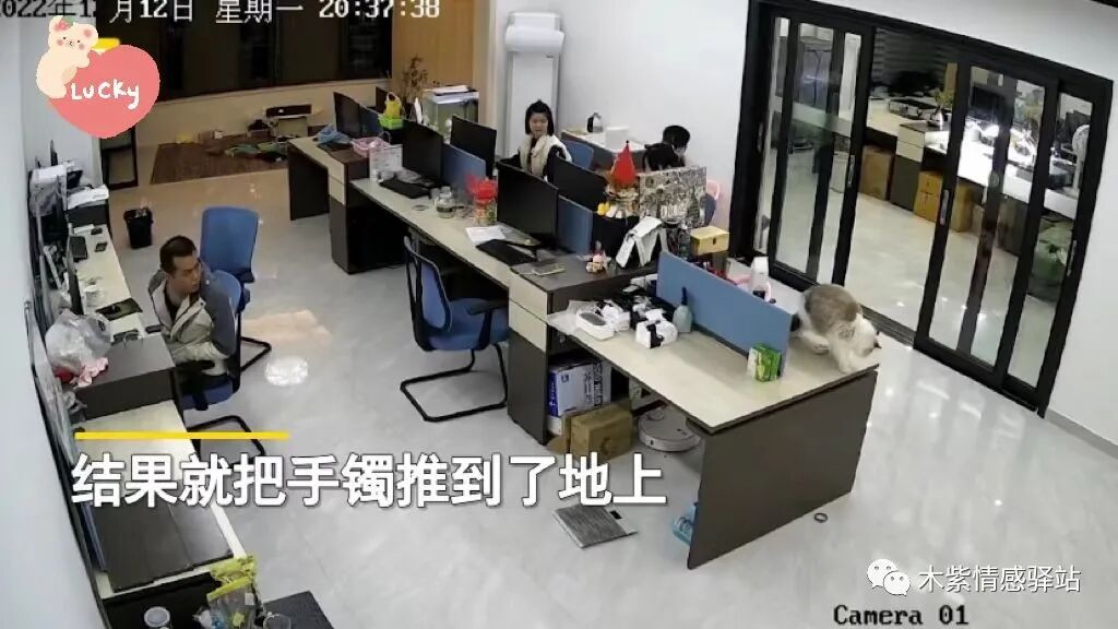 坐标广东揭阳,有网友分享了一段好笑的短视频,画面中,这是一家比较高档的珠宝店,店里的员工们都在认真工作,一名年轻男子把手里的一只手镯放在了办公桌上,然后他就去忙别的事情了。